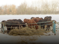 — Мы находимся на частной территории, — сказал он. — То, что мы видим сейчас, тяжело назвать ненадлежащим и грубым обращением с животными. Лошади, которые находятся в леваде, они в нормальном состоянии. Есть некоторые животные, которые выглядят хуже остальных. Сено, которое заготовлено — хорошего качества.