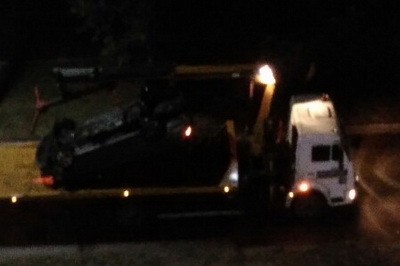 В Рязани эвакуатор увёз перевернутый автомобиль с парковки на Васильевском проезде
