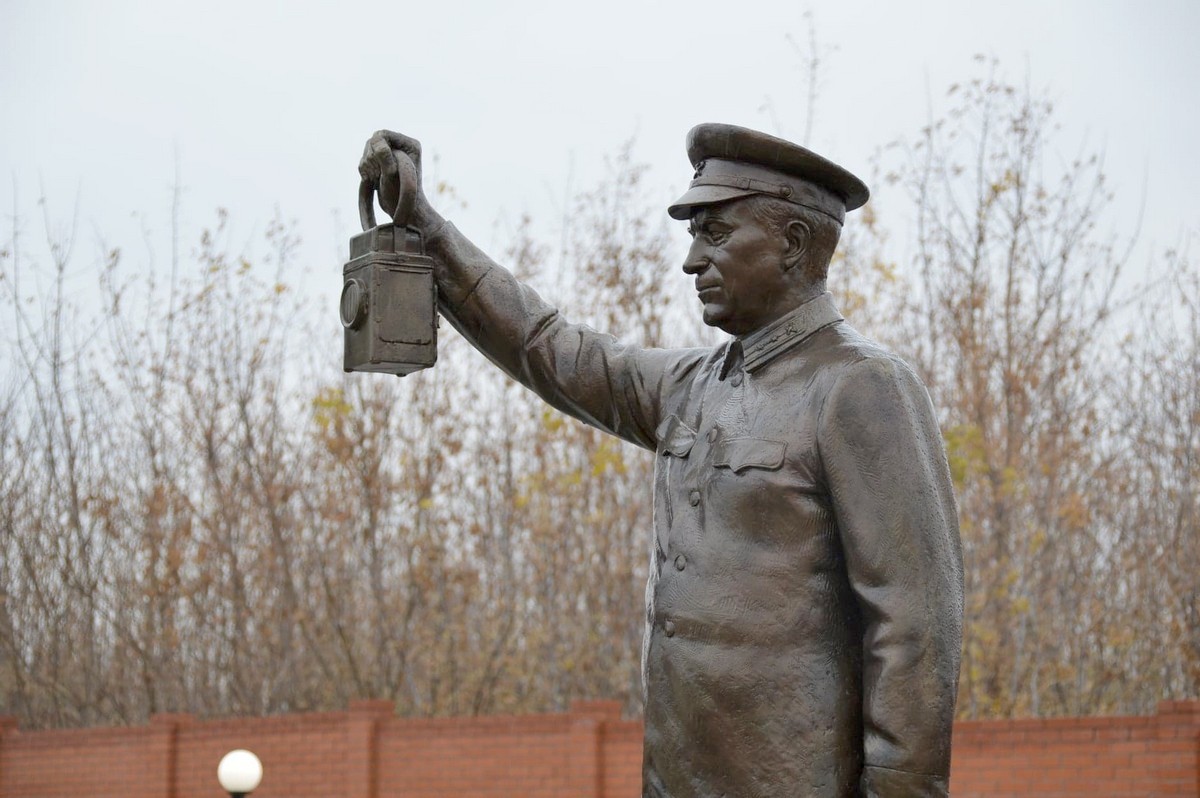 — Наш паровоз серии «Л» — назван по фамилии его конструктора Лебедянского, — рассказал начальник вагонного ремонтного депо Андрей Горун. — Машину, как видно, провожает дежурный по станции — здесь установлен памятник, а также большой железнодорожный светофор. В вечернее время он будет гореть, а весь монумент подсвечиваться.