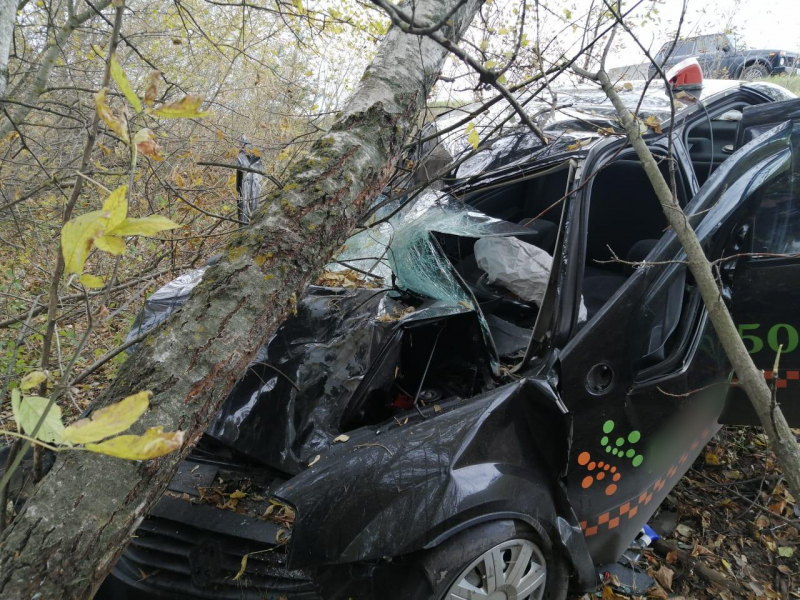 Под Рязанью такси слетело в кювет и врезалось в дерево, водитель погиб