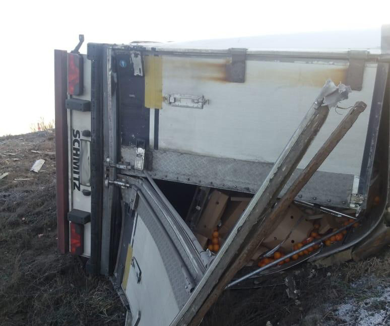 В Путятинском районе большегруз пробил отбойник и перевернулся в кювет