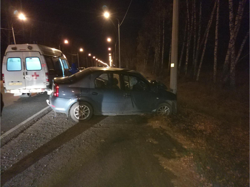 В Рязани пьяный водитель Renault Logan врезался в столб