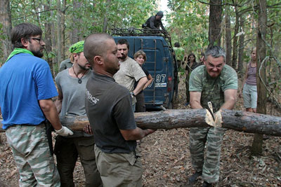 В этом и заключается работа волонтёров. Работая топорами и бензопилами, волонтёры рубят молодняк, растущий на заросших просеках, и стаскивают срубленное в кучи. Работу по расчистке просек желательно по максимуму сделать нынешней осенью, чтобы образовавшиеся кучи веток зимой могли сжечь лесники. Сейчас волонтёры работают над расчисткой просек, отсекающих от основного леса журавлиный и зубровый питомники, а также посёлок заповедника.