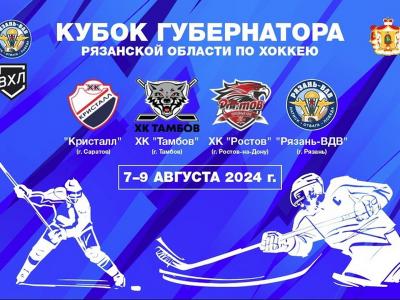 Во Дворце спорта «Олимпийский» Рязани 7–9 августа пройдёт предсезонный турнир Кубок губернатора Рязанской области по хоккею (0+). В нём примут участие четыре команды, которые сыграют друг с другом по круговой системе: ХК «Рязань-ВДВ», ХК «Тамбов», ХК «Ростов» (Ростов-на-Дону) и ХК «Кристалл» (Саратов).