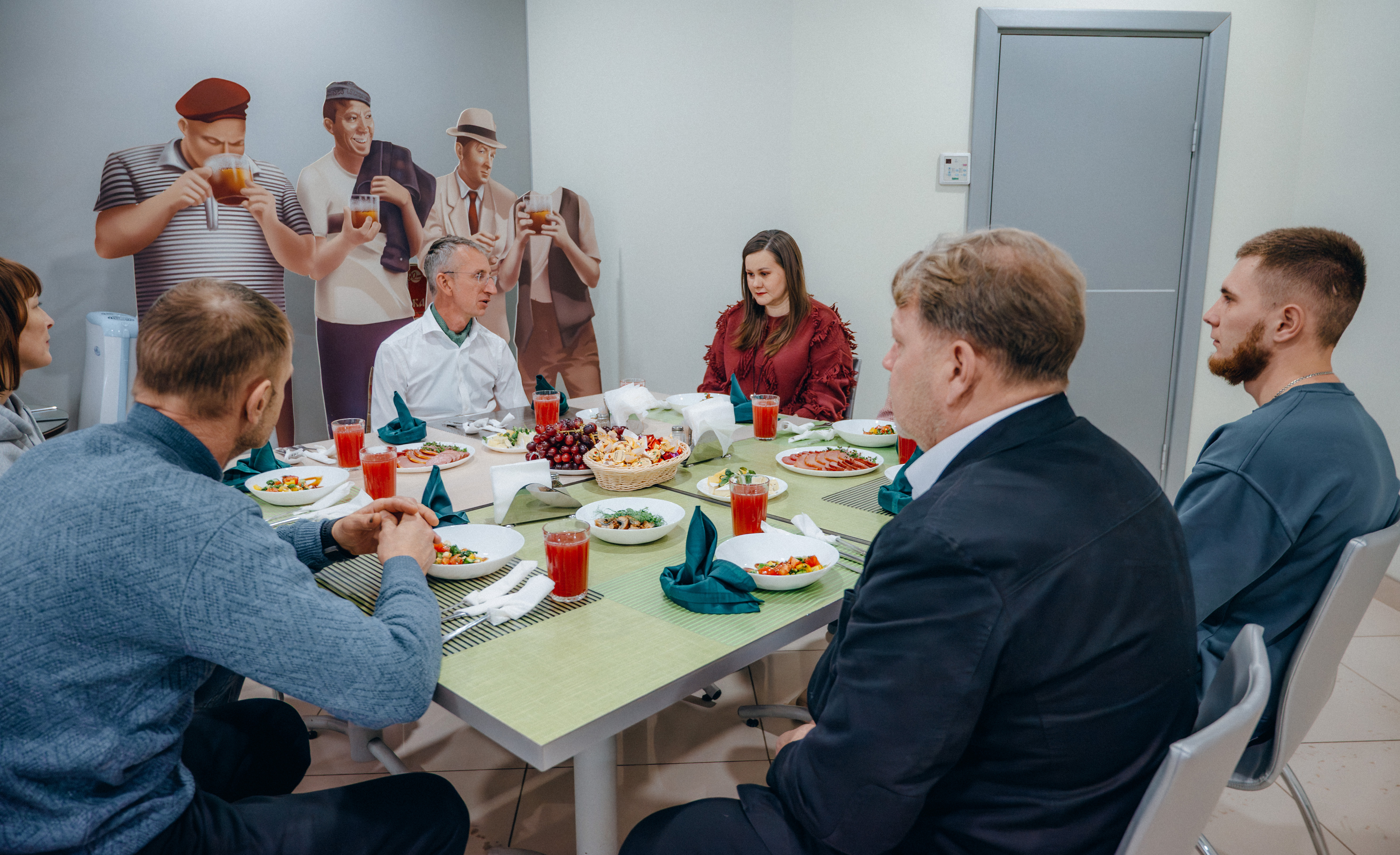 Денис Ружицкий, тот самый боец, служит под Курском. Сейчас он приехал в отпуск и на встречу пришёл вместе с мамой — Светланой Васильевной. Также гостями компании стали родители сотрудника Андрея Ляпукина — Елена Владимировна и Юрий Петрович. Последний рассказал, что сын проходит службу в Херсонской области.