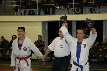Рязанские спортсмены завоевали на домашних соревнованиях пять наград: две золотые, две серебряные и бронзовую. Финал в весовой категории свыше 85 килограммов получился полностью «домашним»: спор за «золото» вели спортсмены РВВДКУ Эльдар Ягудин и Евгений Лемеш. Оба тренируются под руководством Владимира Исламова. В финале победил более опытный Эльдар. Серебро у Евгения.