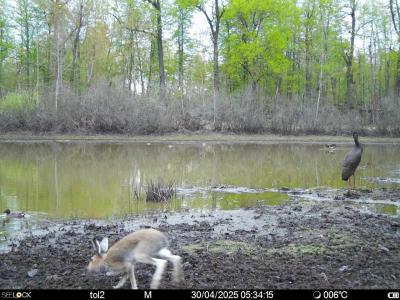 В Окском заповеднике засняли зайца на озере с чёрными аистами