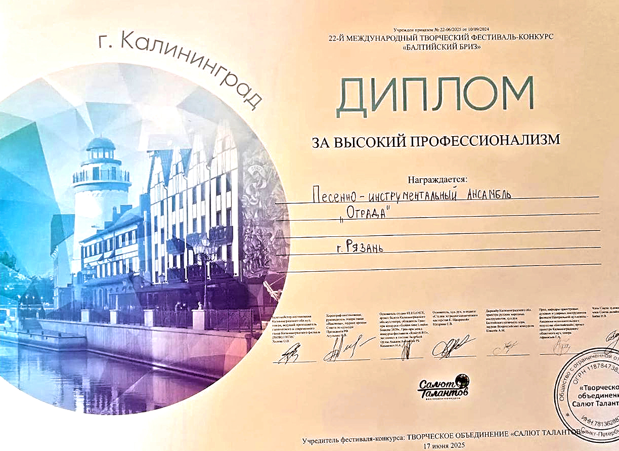Рязань на «Балтийском бризе» представлял песенно-инструментальный ансамбль «Отрада» из ДК «Приокский». Художественный руководитель ансамбля — Елена Подкидова, хормейстер — Виктор Поздняков.
