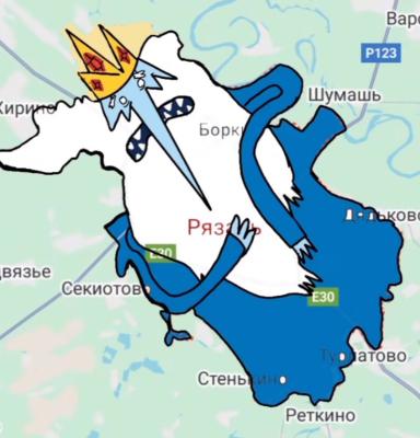 Контур Рязани напомнил Ледяного Короля — персонажа мультсериала «Время приключений». Заполнить всю карту котиками, морскими коньками, аистами, Киси Миси и прочими персонажами решилась блогерша из соцсети TikTok Елена. В большинстве случаев девушка рисует то, что пришло на ум.