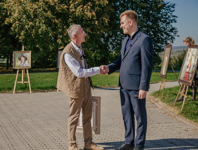 Картины директору музея-заповедника Вячеславу Журавлёву передал управляющий директор ГК «Зелёный сад – наш дом» Андрей Оришкевич.