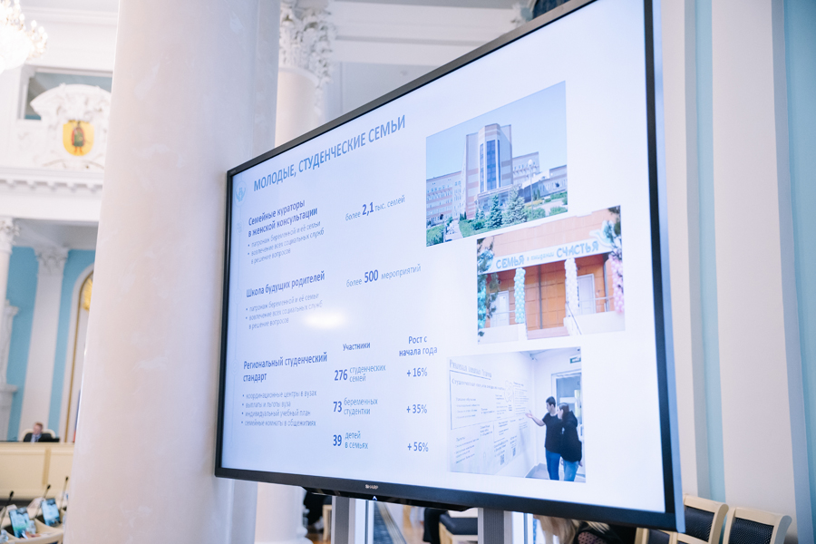 Говоря о результатах анализа мониторинга эффективности принимаемых мер, глава ведомства обозначил достигнутые показатели: «Число студенческих семей за последние два года увеличилось на 16 %. За последние десять лет количество многодетных — выросло почти в два раза (16 700). Аналитика рождений по возрастным группам и количеству детей показала, что отмечается рост рождений первых детей в молодых семьях — до 25 лет. Видим также тенденцию, что увеличивается количество женщин до 25 лет, у которых рождаются третьи дети. Это даёт основание говорить о том, что меры, введённые для молодых семей, работают. Особенность региона также отмечается ростом рождений третьих и последующих детей у женщин старше 35 лет. Снизилось число разводов. Уменьшилось количество абортов».