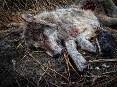 Рязанцы обнаружили убитую лосем волчицу в мещёрском лесу