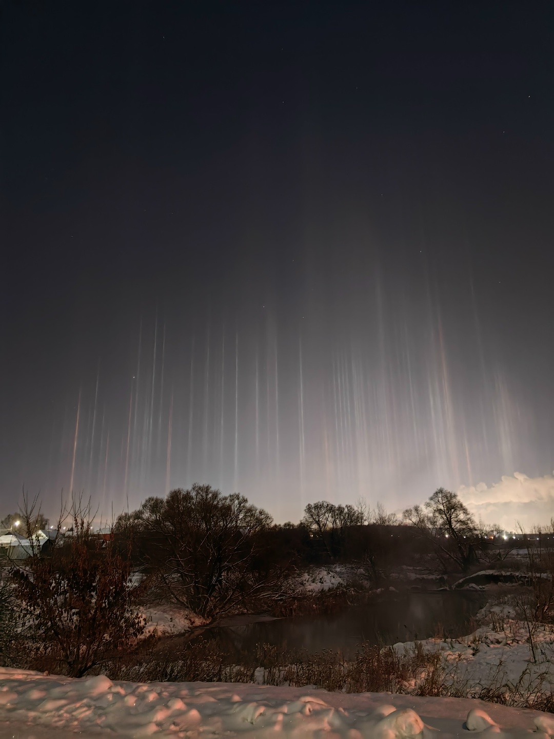 Световые столбы — оптическое явление в нижних слоях атмосферы, заключающееся в отражении света в кристалликах льда шестиугольной формы или кристалликов льда в виде шестиугольных столбиков. В течение ночи они могут появляться и исчезать.