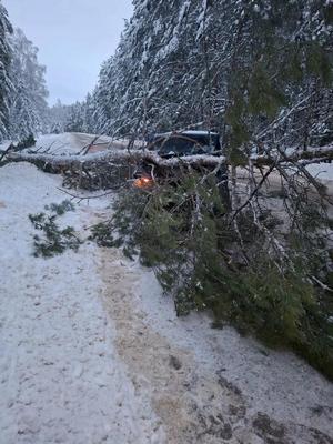 В Рязанском районе упавшее на трассу дерево разбило автомобиль