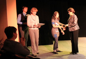 Художественный руководитель театра, заслуженный работник культуры Геннадий Кириллов вручил памятные дипломы тем сотрудникам университета, которые принимают большое участие в жизни театра. Творческие коллективы РГУ и некоторые актёры театра «Переход» были отмечены грамотами. Также в праздничную программу вошли отрывки из спектаклей «Эти свободные бабочки», «Есенин — любовь», «Кавардак, Или извините за выражение».