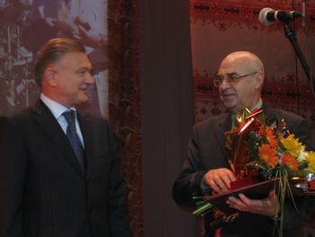Олег Ковалёв в первую очередь поздравил и вручил грамоту министру сельского хозяйства Рязанской области Николаю Шестакову.