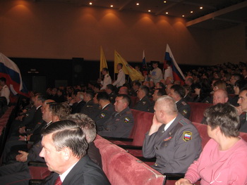 Начальник регионального УВД напомнил о творческих людях в рядах сотрудников внутренней службы. Это и команда КВН рязанского филиала московского университета УВД России, которая заняла первое место в лиге силовых структур, волейбольная команда УВД Рязанской области выиграла всероссийский чемпионат. Отметил Перов и о представительницах прекрасного пола, в честь которых от лица всех милиционеров региона выразил огромное милицейское спасибо за беспокойство, за терпение и бесконечные часы и дни ожидания.