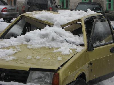 В центре Рязани снежная лавина проломила крыши двух автомобилей