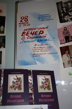 Юбилейный творческий вечер Ольга Сидорова посвятила презентации новой книги «Время Нелюбви» — это первая часть дилогии, вторая будет выпущена в следующем году. Редактором книги выступил Александр Сафронов, заведующий кафедры литературы РГУ. В книгу «Время нелюбви» вошли стихотворения последних лет — 2004-2006 годы.
