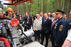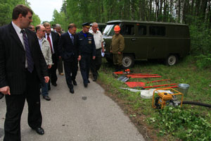 После обсуждения ключевых вопросов, касающихся пожароопасной обстановки в лесах области, губернатору были представлены для осмотра пожарная и инженерная: новые пожарные машины ГАЗ-33081, трактор МТЗ-82 с плугом, трактор МТЗ-82 с коловратным насосом, трактор Т-150 с цистерной 10 тонн, мотопомпы, ранцевые опрыскиватели, напорные пожарные рукава и другое. Кроме этого, Олег Ковалёв познакомился с личным составом